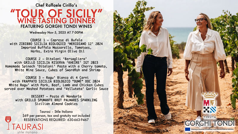 Join Chef Raffaele Cirillo on a culinary tour through SICILY featuring GORGI TONDI WINES!